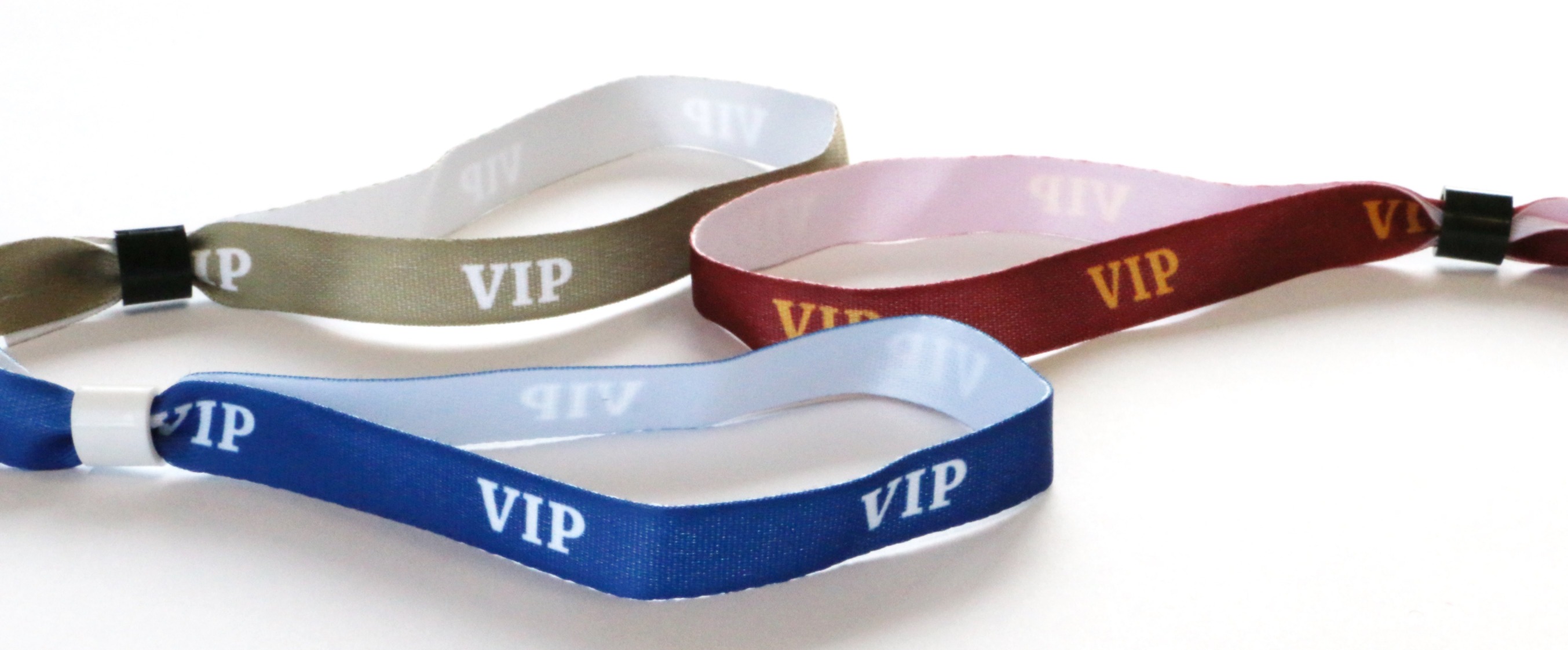 Unsere vorgedruckten VIP-Einlassbänder bestehen aus weichem Polyester und haben einen praktischen Slidelock-Verschluss, der nur in eine Richtng verschoben werden kann. Damit ist das Band nicht übertragbar.
